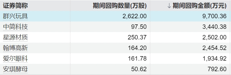 18 14小时前6家上市公司股票获回购,群兴玩具回购金额最高